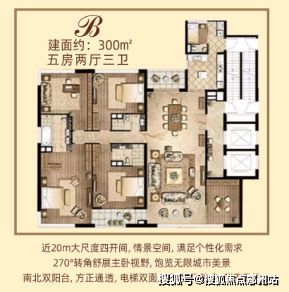 主卧270度转角落地采光视野,南北双阳台,