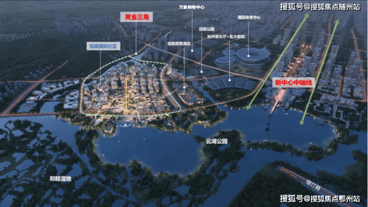 随着杭州城市新中心中轴线规划细节发布,建设的大幕陆续拉开:国际体育中心两馆标段开工、低碳国际社区地块成交、杭州未来国际演艺中心(杭州音乐厅、余杭大剧院)面向全球征集设计方案等,由低碳国际社区、杭州未来国际演艺中心、万象购物中心三大重要项目围合而成的“黄金三角”渐渐显露雏形,成为中轴线规划设计的重磅亮点。(注*4)