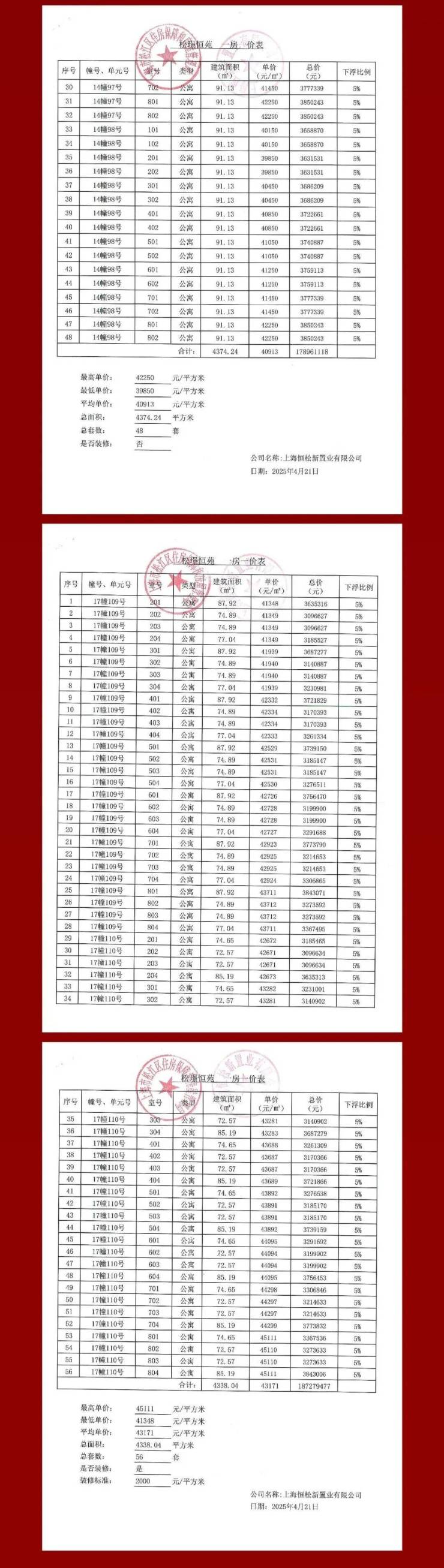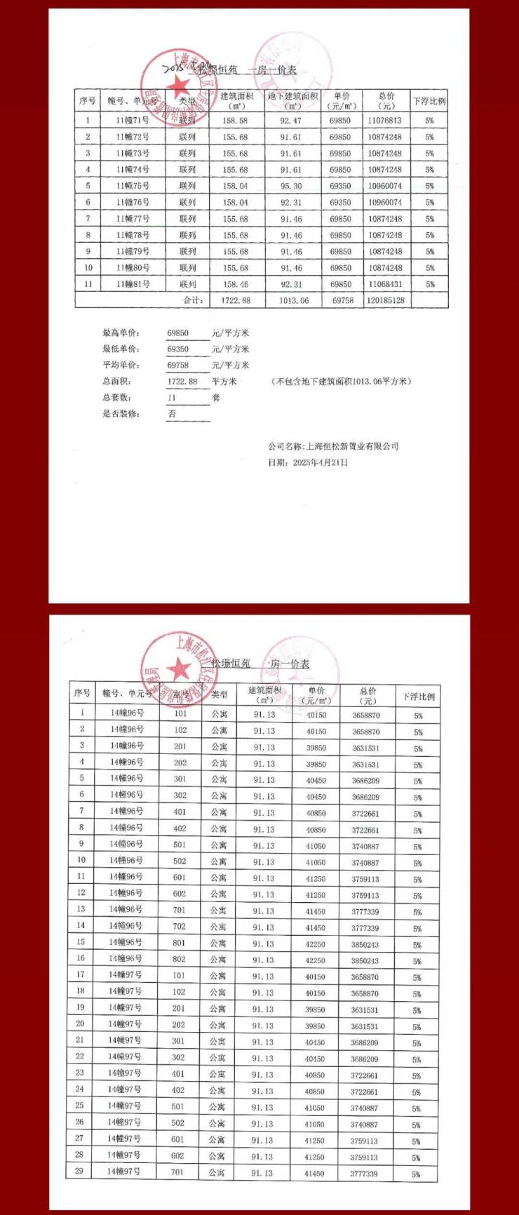 一房一价表