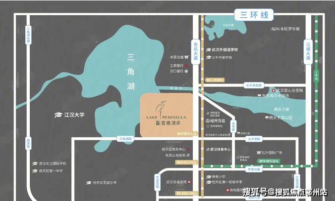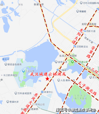 武汉城建云栖湖岸位于东风大道与体育路交汇处,在楼市划分中属于经开核心区,行政划分属于经开区,距离三环线约1.5g公里,属于三环外。