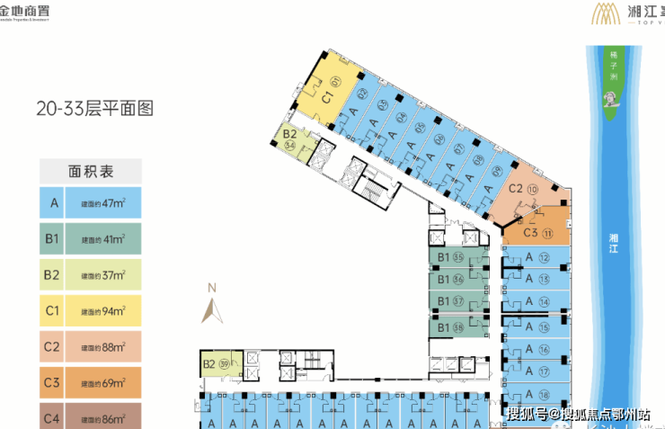【产品户型价值联想】 :A/B类面积段户型约37-47㎡,C类面积段户型约69-94㎡平层公寓,整层定制打通约1900㎡,全能型户型设计,高端临江酒店、美容SPA会所、培训机构、健康疗养中心、互联网公司、白领自住公寓、个人工作室等皆可打造,宜商宜住宜投资,人气核心不愁租