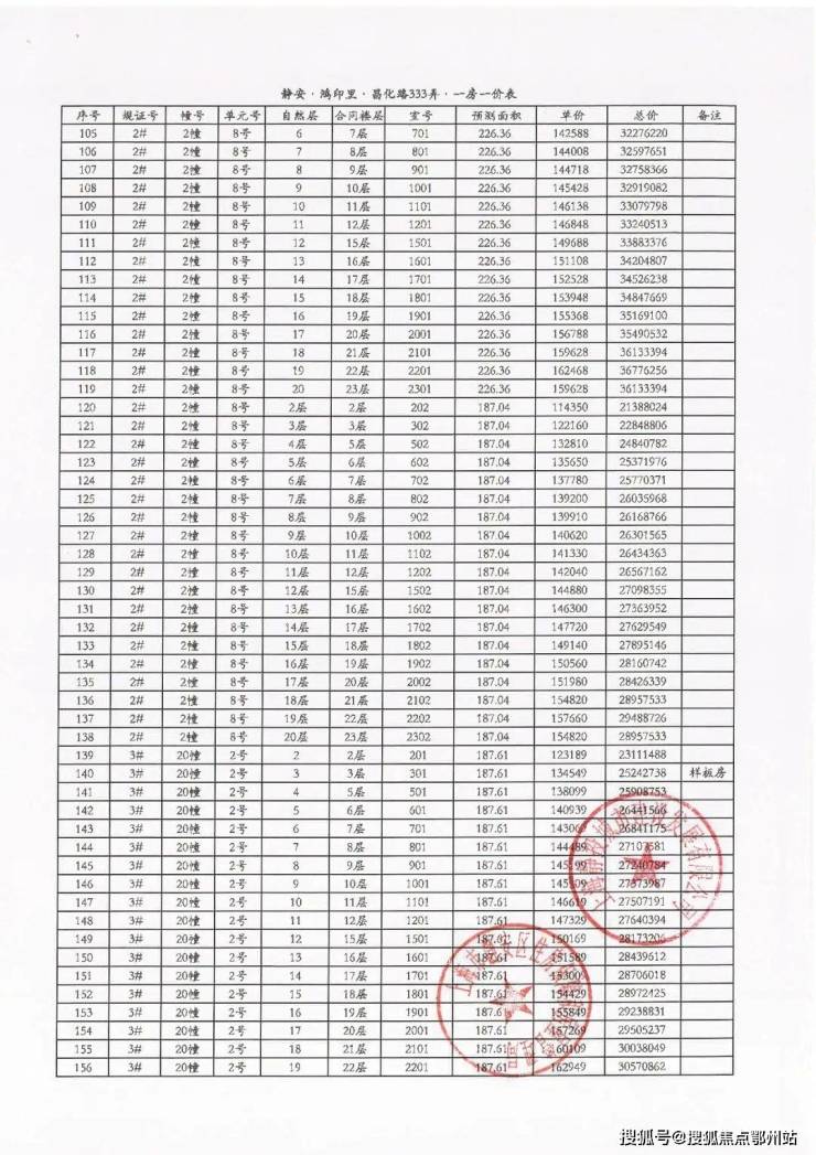 附6套房源一房一价表