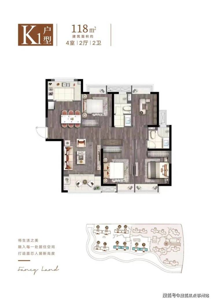 汇景华庭在售建面约89/118㎡3-4房,总价350万级起。