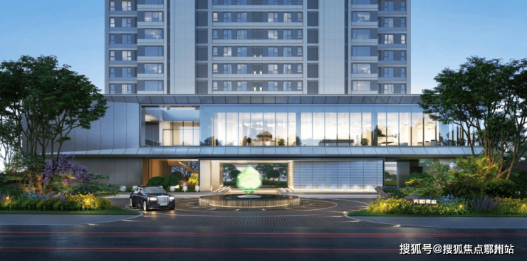 项目大门比较简洁,采用了酒店式的车行环岛,落客区可以直接进入,仪式感拉满。