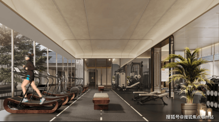 健身区为喜欢流汗运动的人士设置有 健身器材、室内篮球馆, 还为喜欢舒缓运动的人士设计了瑜伽静心室。