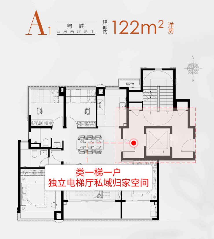 该户型 类1梯1户设计,享类独立电梯厅,出入更具仪式感。