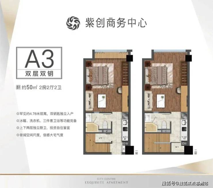 与主流公寓有所不同,紫创商务中心面对同类双钥匙普遍4.2m层高的“标准做法”,进一步拔高,做到4.78m礼遇级层高数值。要知道