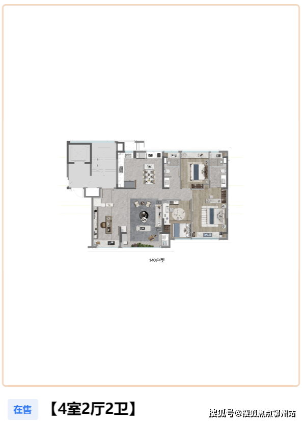 约140㎡4房2厅2卫的户型,四开间朝南,通透敞亮。半开放式的U型厨房,空间感更开阔,切配更舒适便捷,一体化中西双厨设计,给予生活多一种选择,与家人分享多一种美味。餐客厅一体化,空间更奢阔,女主人在厨房忙碌时,一眼就能看到在客厅玩耍的孩子,与孩子无障碍交流。更宽敞的客厅,无论是朋友聚会、亲子游戏还是家庭观影,都能满足更多生活的美好。