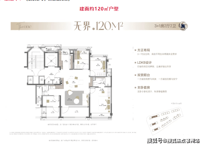 整体布局与140㎡户型基本一致,双南向阳台、独享电梯厅、6飘窗等户型拓展面积超过18㎡!