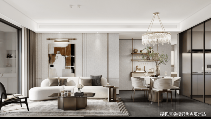 建面约99㎡不仅保留三开间朝南和餐客厅一体化的优势, 尺度更大踏步进阶 。