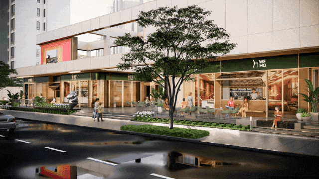 更重要的是对街区气质的拉升。于业主, 从街角到商业再到住宅入口,一路都是浓烈的城市感,穿越高级烟火气然后回到静谧的住宅花园里,赋予人强烈的归家仪式感。