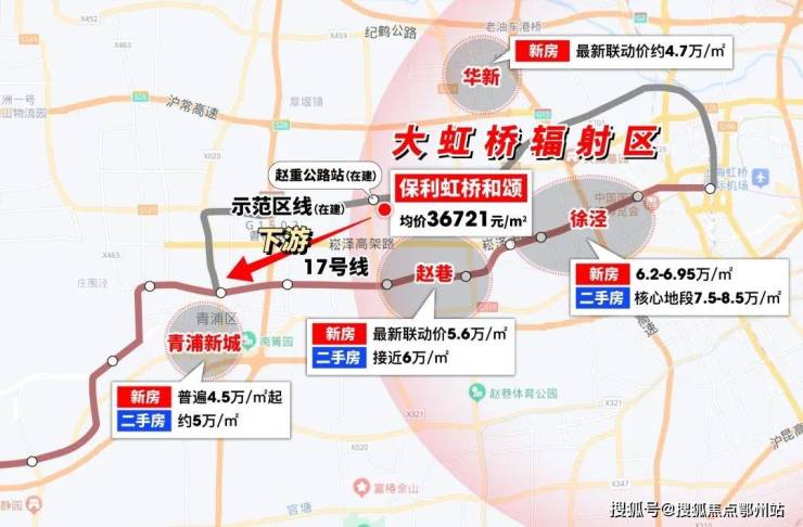 甚至项目下游青浦新城都已经 4.5万/㎡起 。