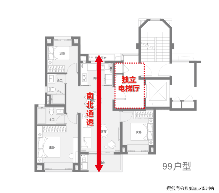 ✔独立电梯厅(除建面75㎡)!