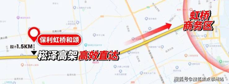 保利虹桥和颂直线距离崧泽高架仅约1.5公里,上高架后没有红绿灯直通大虹桥核心。