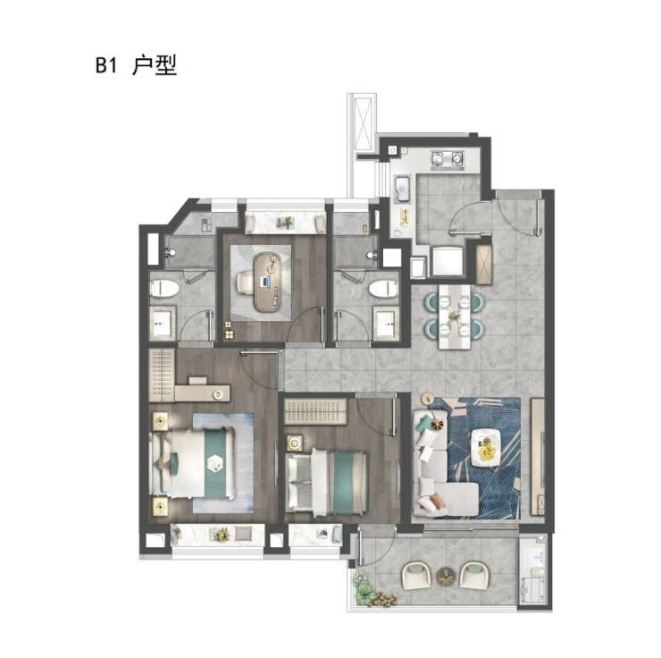 在整体的户型设计上,项目在做到方正户型的基础之上,保持多开间朝南设计,采光优越。整体户型动静分离,居住体验感更佳。