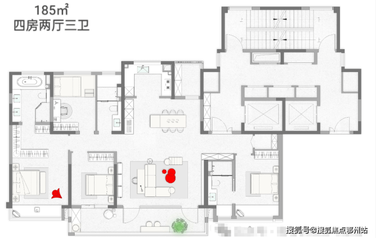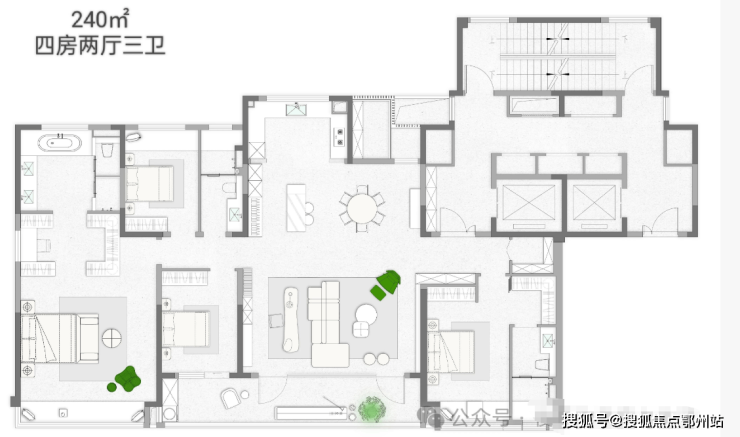 户型配置:建面约155/185/240㎡,全系大平层