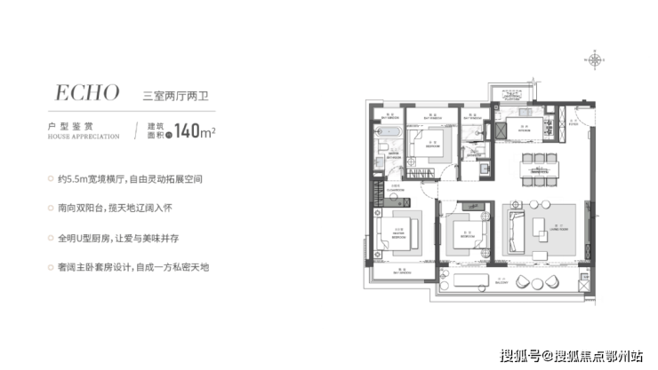 洋房:11栋(8-10层),主力户型 158㎡四居(南北双套房,270°双联阳台)