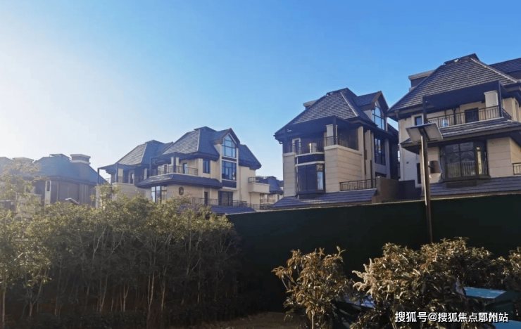 来看一下实拍图,别墅长这样:前排法式风独栋、后排英伦双拼~