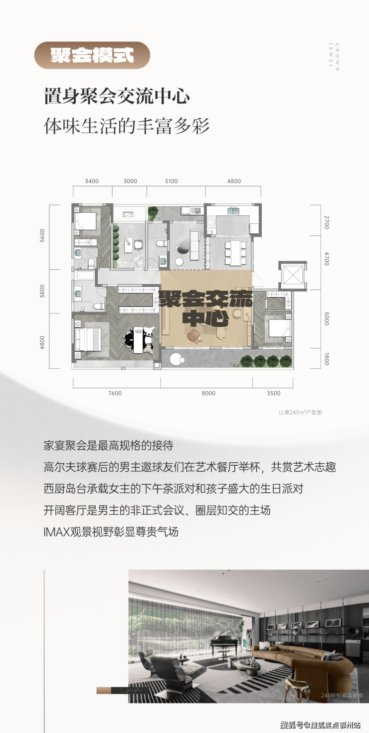 LDKB巨厅——山湖245社交厅以近100㎡空间轻松超越市面大部分300㎡户型。