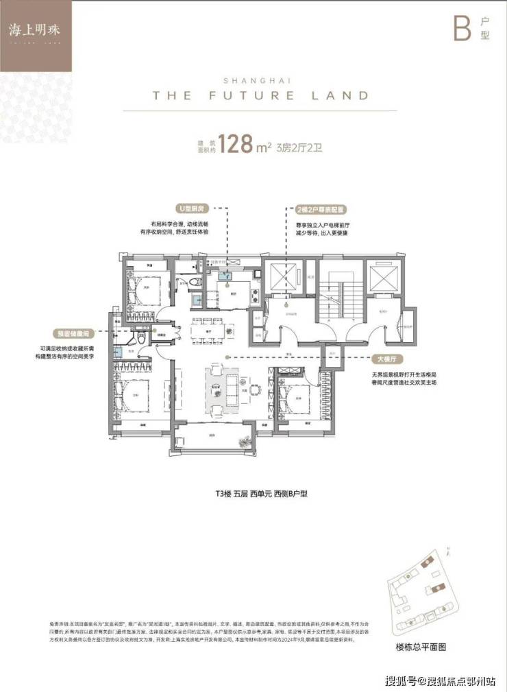 其中,建面约128㎡大三房,大横厅设计外接大阳台,同时客餐厅一体化设计进一步放大社交空间。