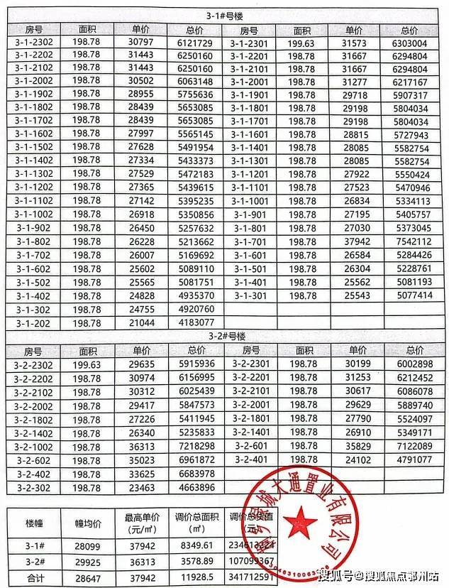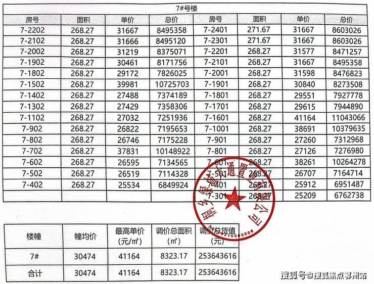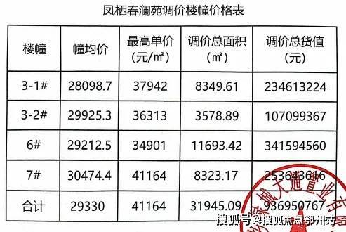 一房一价价格表