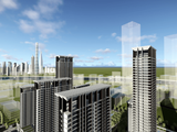 项目高层立面的设计灵感源自武康大楼的曲面弧形。在保证现代化居住舒适性的情况下,呈现经典的曲面转角、Art-Deco法式装饰阳台以及经典的三段式黄金比例运用。