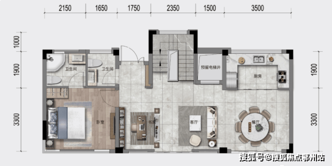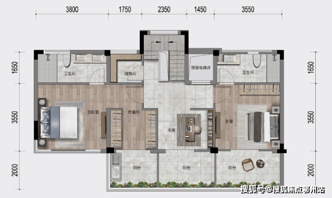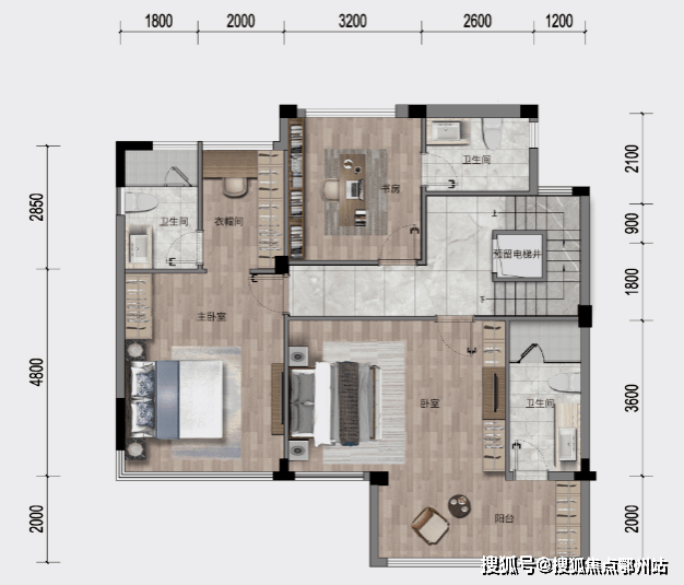 二楼双卧,均是套房设计带干湿分离卫浴空间。最小的卧室也大约有3.5米面宽,实用舒适及私密的居住感瞬间拉满。如果还想更极致些,后期把长度约9.1米的阳台贯通,打造一个“空中花园”也未尝不可。