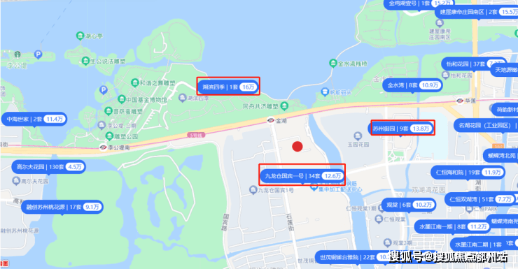 绿城玫瑰园所在双湖板块作为苏州老牌富人别墅区,旁边二手房最高16万+/㎡。