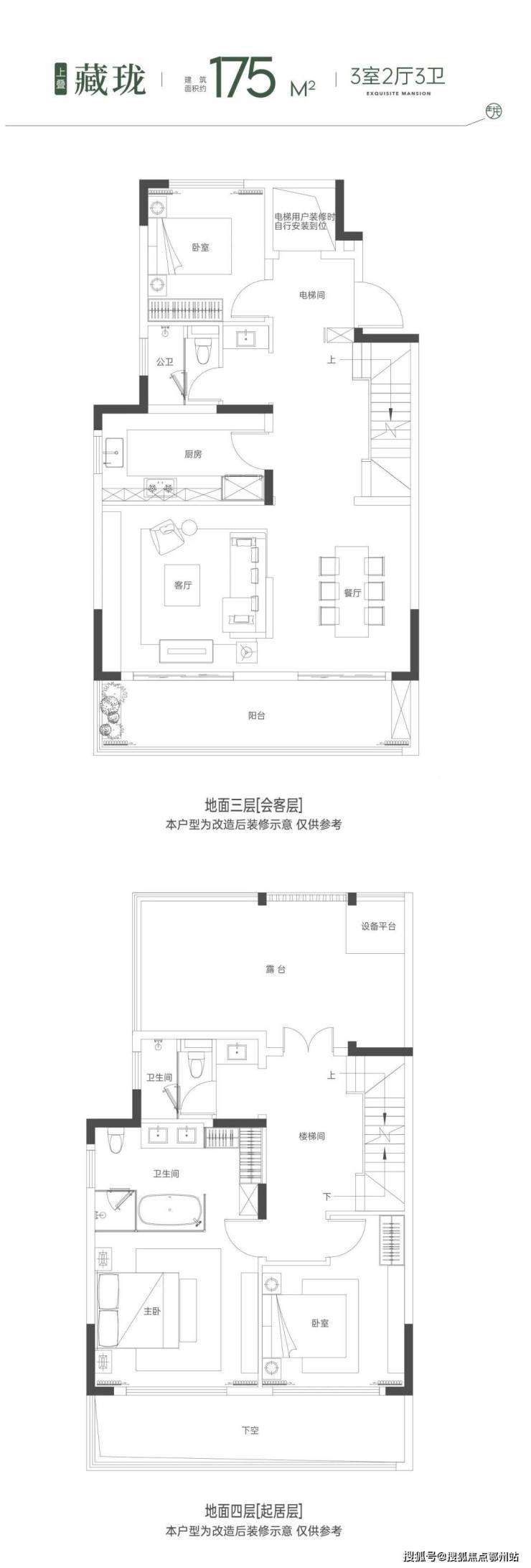 叠墅:建筑面积约175㎡ |3室2厅3卫
