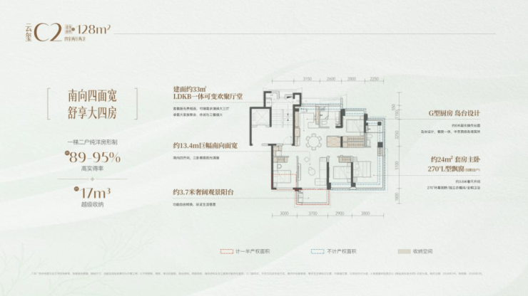 约13.4米的南向四面宽,三卧朝南。这个超长采光面通常出现在市面上160㎡的产品上,建发直接给你缩到128㎡!
