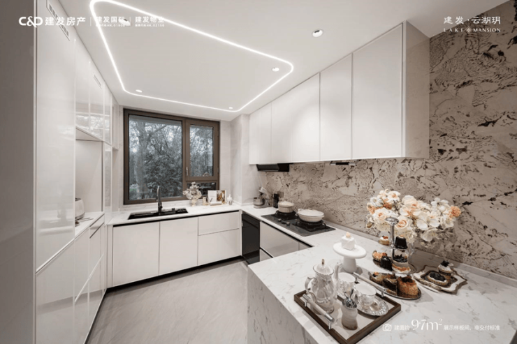 最让我服的是,餐边柜不仅交付,居然还预留了下水。谁能想到?很多豪宅都想不到的细节,建发在97㎡的厨房里给你配齐了。不去现场看,真不知道有多夸张!