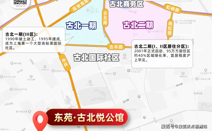 但古北一期、二期的房地产开发早已饱和,新房也已经断供许久!于是,国际社区的建设便顺势拓展到了闵行金虹桥。