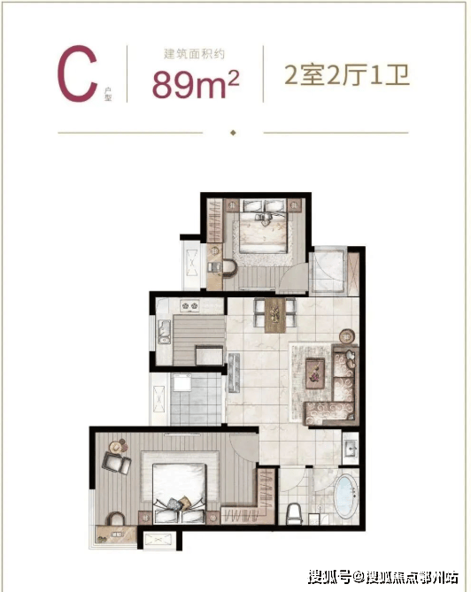建面约87-89㎡2房2厅1卫
