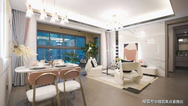 再加上这 南向横跨客厅+餐厅的宽面大阳台、全卧室均带飘窗 ,这个户型室内的采光、视野、通风等等都表现的尤为惊艳。
