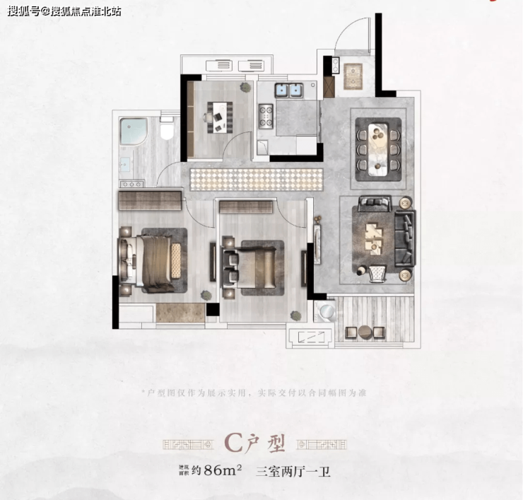 面积:72㎡二房两厅一卫,89㎡三室两厅两卫,85㎡三室两厅一卫