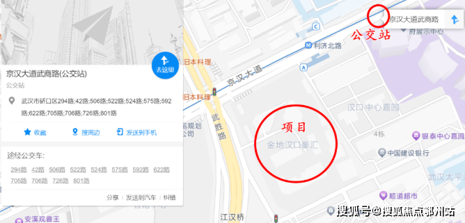 公交方面:京汉大道武商路站的公交线路非常多,有12条,武胜路、顺道街上都有公交站,公交出行非常方便。