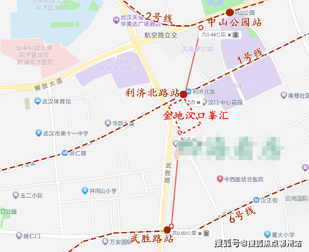 地铁与公交:项目周边有3条地铁,其中1号线利济北路站就在小区正门口,6号线武胜路站和2号线中山公园站距离项目约500-600米,在步行范围内。