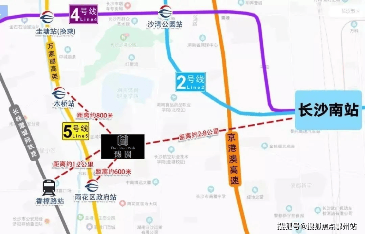 项目与地铁5号线“雨花区政府”站直线距离约600米,与“木桥站”约813米,真正的双地铁口!(数据来源:百度地图)
