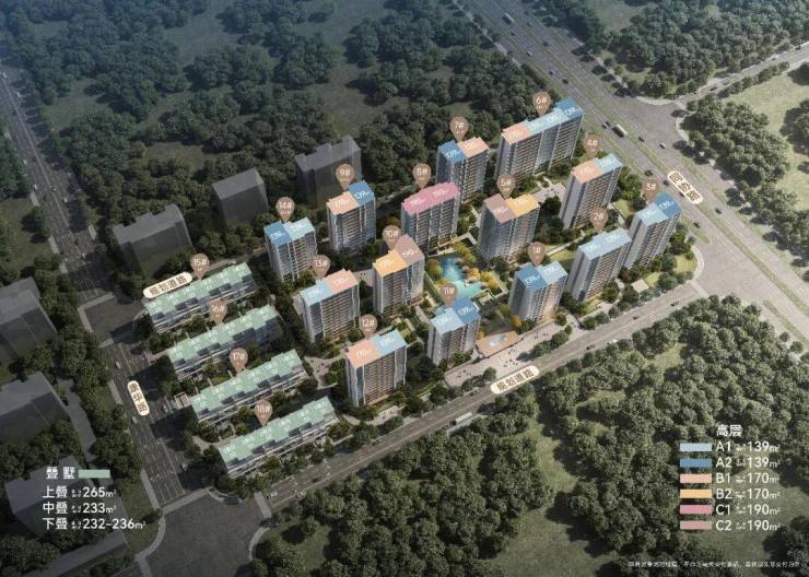 【户型面积】高层建面约139~190㎡、叠墅建面约230~263㎡