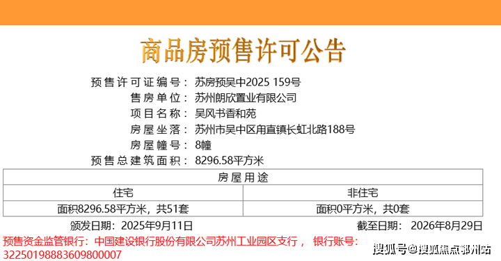 9月11日,吴中甪直吴风宸樾府(吴风书香和苑)领取第三批次房源预售,共51套,整体备案均价约27226元/㎡,单价区间约25956-28080元/㎡,总价区间约369-512万元。