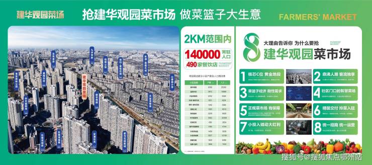 项目宗旨:辐射生态新城2公里范围内14万+常驻人口,幼儿园小学初中600米内已配齐,490家餐饮店 ,规划就是净菜市场,将承载着周边2万多户居民的‘一日三餐’,更是一座融合传统烟火与现代智慧型的财富枢纽
