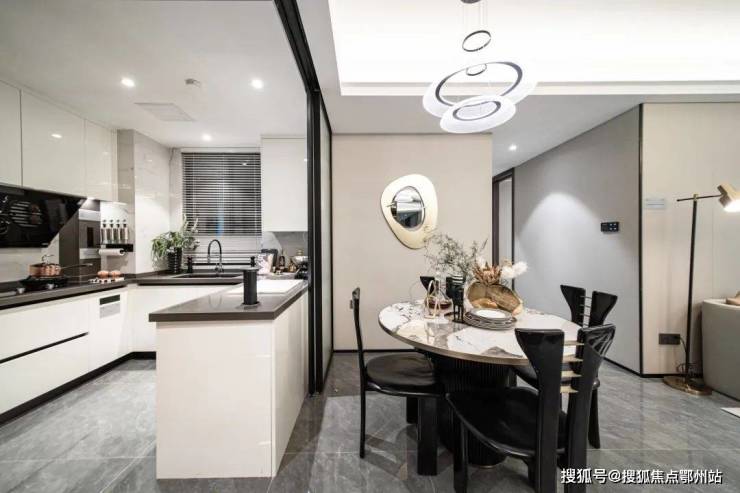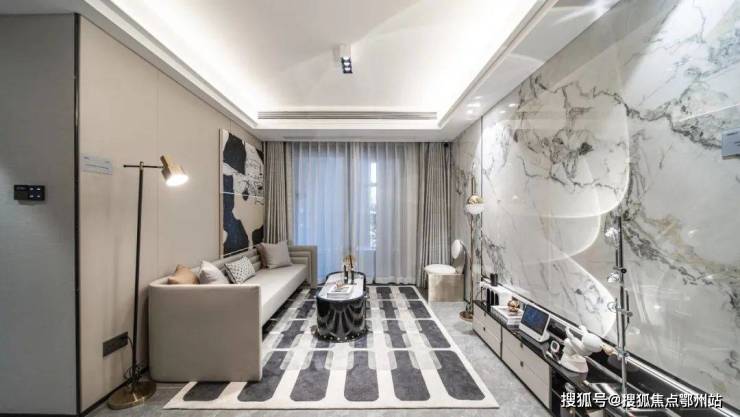 梁志天大师手笔,为其倾情擘画,96㎡户型格局做到了3房2厅1卫,白与深灰辅以黑,使空间更富有层次感,深与浅的碰撞是简约又不失高级的搭配。