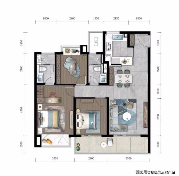 ©建面约118㎡户型 参考图