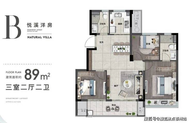 就连 建面约80㎡的户型,都做到了三房两厅一卫,尤其是户型样板的呈现,产品力惊人。有着日月城置业、宝龙地产、深石地产,三大房企的联袂背书,又是墅区洋房中的小户型,悦景湾还没开盘便已经让人期待万分了!今天就随着哈楼绍兴的脚步一起探访悦景湾80㎡和89㎡的户型魅力!