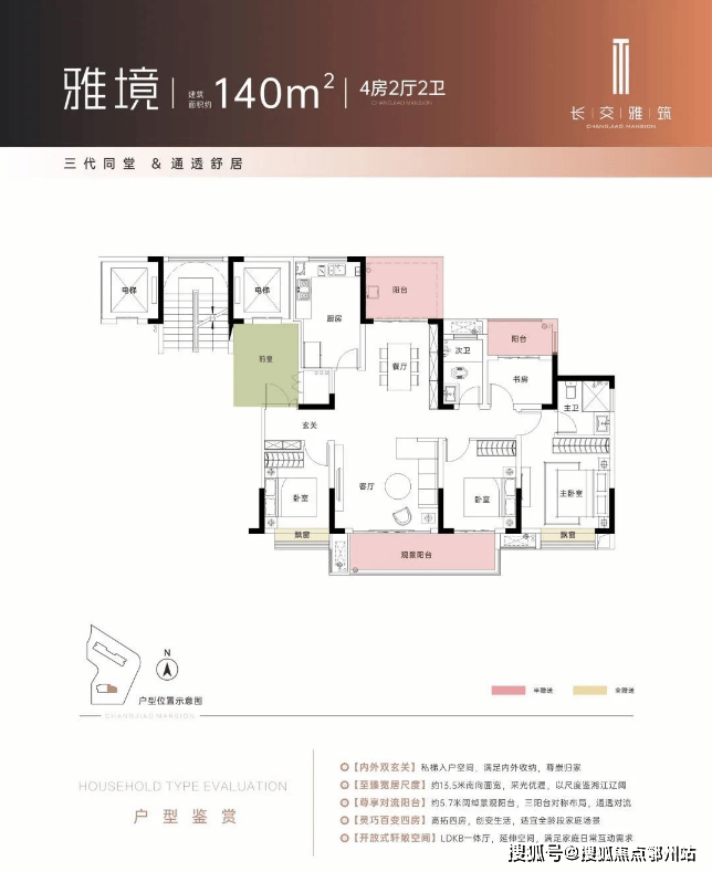 全屋四飘窗+双阳台+电梯前室 ,实得面积可与市面上160㎡大平层相媲美。