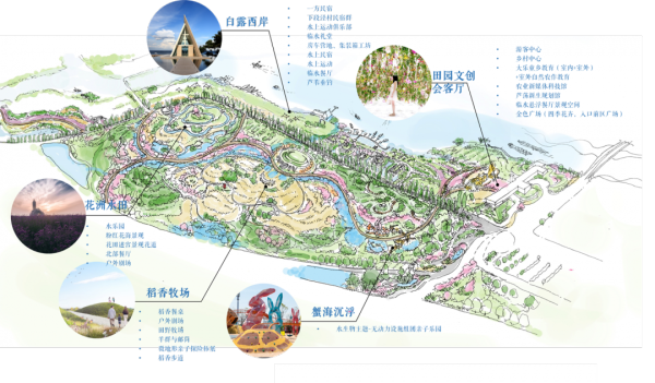 欢乐田园,是这个综合文旅项目中的另一大看点。它借助现有沙家浜风景区和周边水域基础,保持原貌升级打造而成,增添了花洲水田、稻香牧场、蟹海沉浮、白露西岸四个亲子互动区。