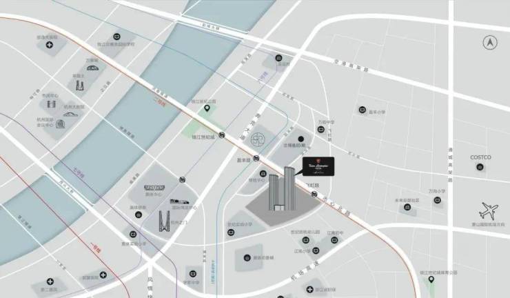 交通:奥体核芯区,快速通达全城,3分钟机场高速,20分钟火车东站和萧山国际机场