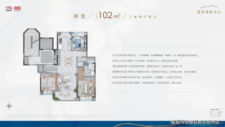 4、另有102㎡爆款伴墅平层,彰显真正的三房尺度