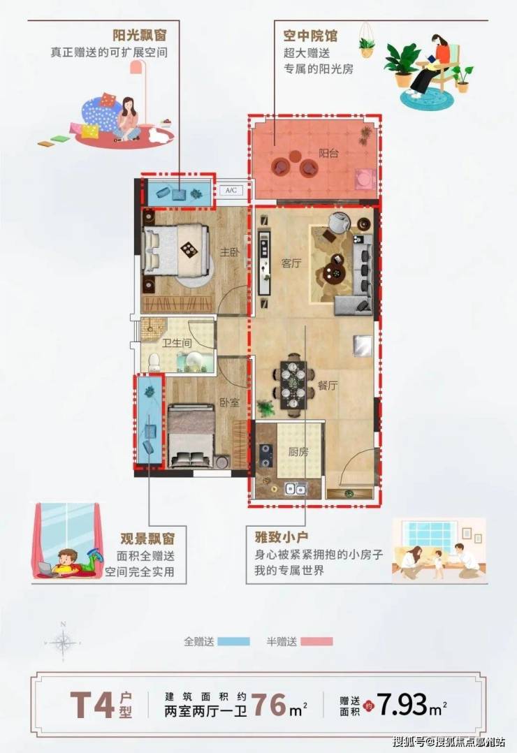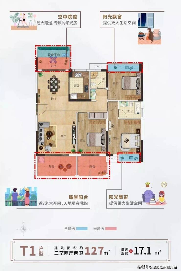 该户型赠送面积约17.1㎡,同样的价格,可以获得远超127㎡的空间享受,更大的生活空间,给予生活更多想象。