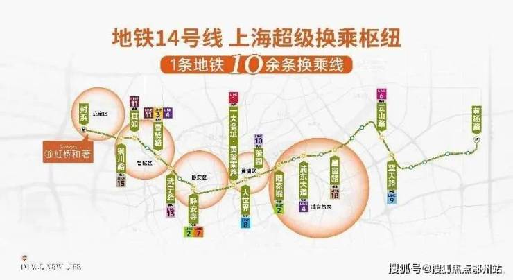 是继2号线后第二条经过陆家嘴的轨交,足见14号线的能级至高。其次,14号线方便换乘,未来可与1/2/3/4/6/7/8/9/10/11/13/15/18/19/21/嘉闵线等大约16条轨交换乘。重要的是,14号线向西延伸安亭产业城,扩展产业客,持续升级。